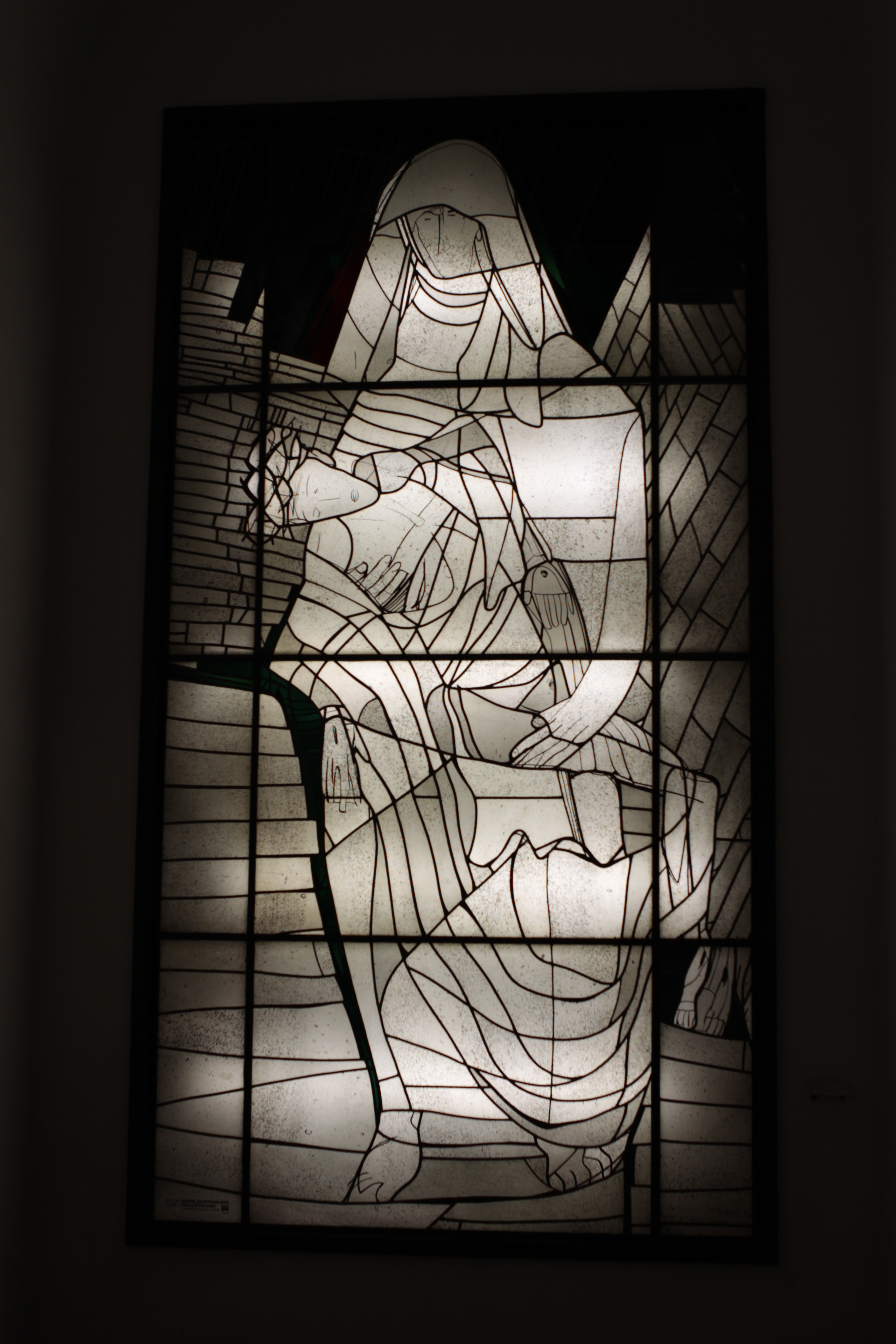 Modern Monochrome Stained Glass Madonna. Vatican City